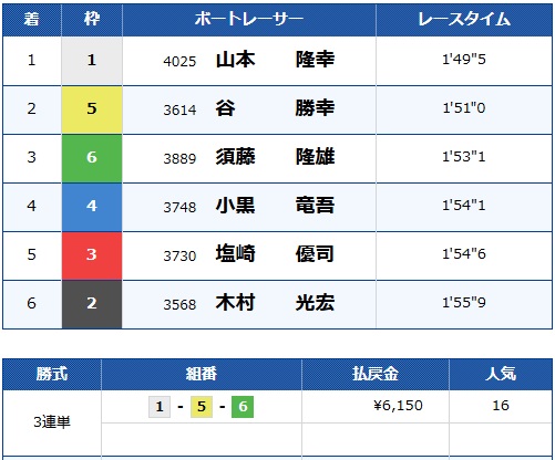 - 【1号艇】:山本隆幸(A1/兵庫)