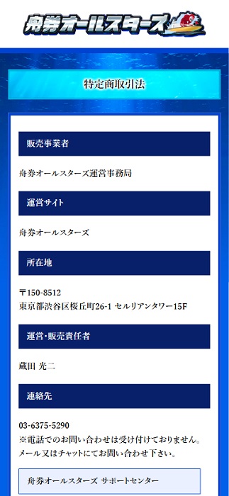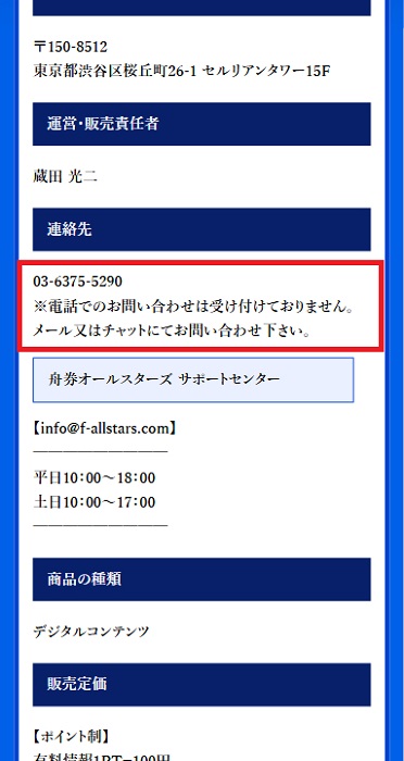 舟券オールスターズは住所も気になりますが、電話対応を行っていないという点が一番怪しく思えます!