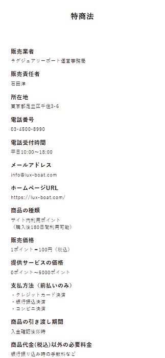 「ラグジュアリーボート」のトップページと基本情報!大きな問題点は無し