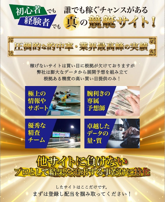 冒頭には「極上のボートレース情報提供サイト」とかなり強気な文章が書かれていましたが、予想の特徴や強みが気になるところです。