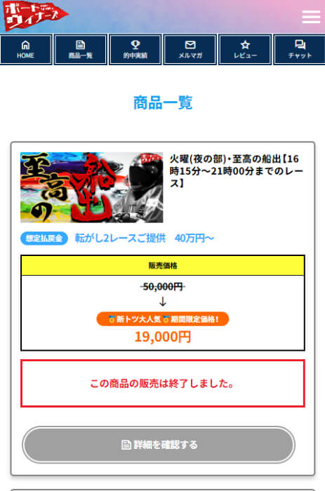 ボートウィナーズの有料プランは全部で10通り×1日2回(デイ・ナイター)。