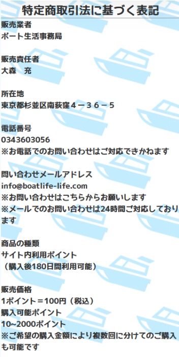 - 【販売業者】ボート生活事務局