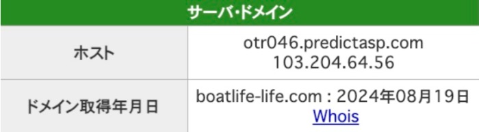 「ボート生活」のIPアドレスは「103.204.64.56」