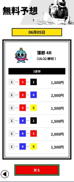 こちらは無料予想と30PTのみで使えるお試し予想となっています。