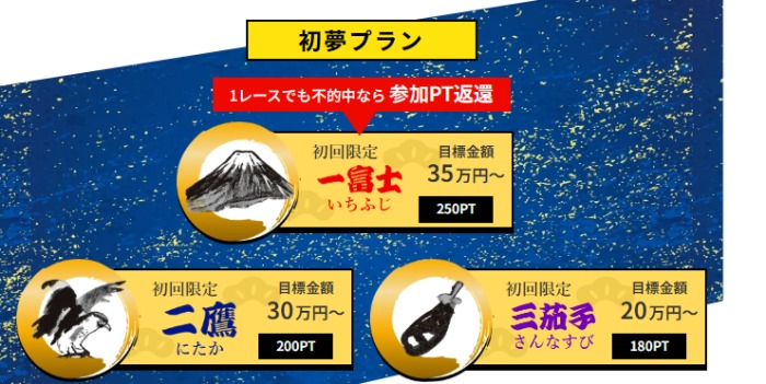 一富士には1レースでも外れた場合、PT返還補償がついているという太っ腹なプラン。