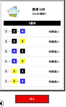| 恵比寿 | 3連単 2レース | 3~10点 | 15,000円 | 50万円~ | 500PT |