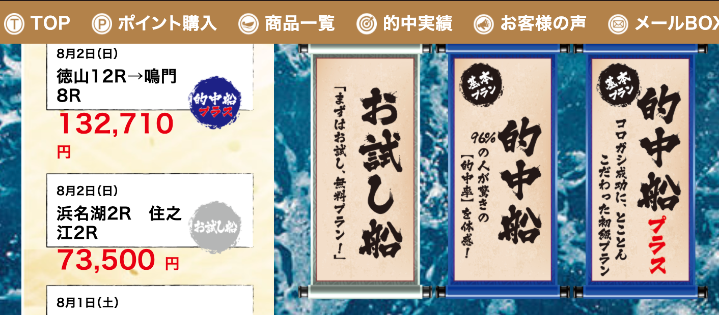 「豪華客船」「輝船」「幻船」については、例えば「激船」プランをよく買っている人など、特定の会員にのみ案内されるようです。