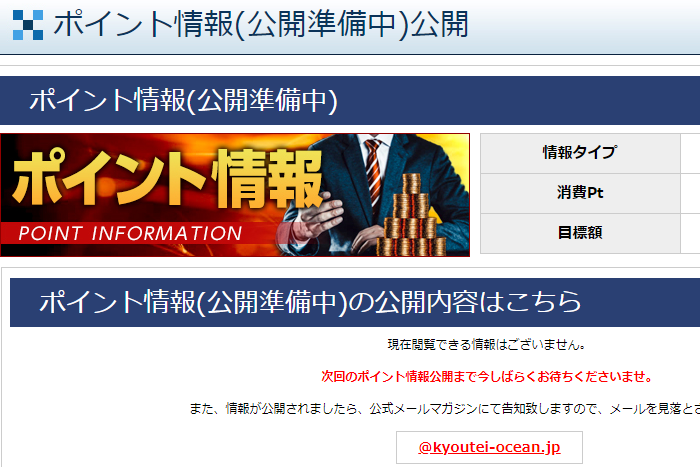 「Ocean(オーシャン)」の「ポイント情報」は比較安く使えておすすめ