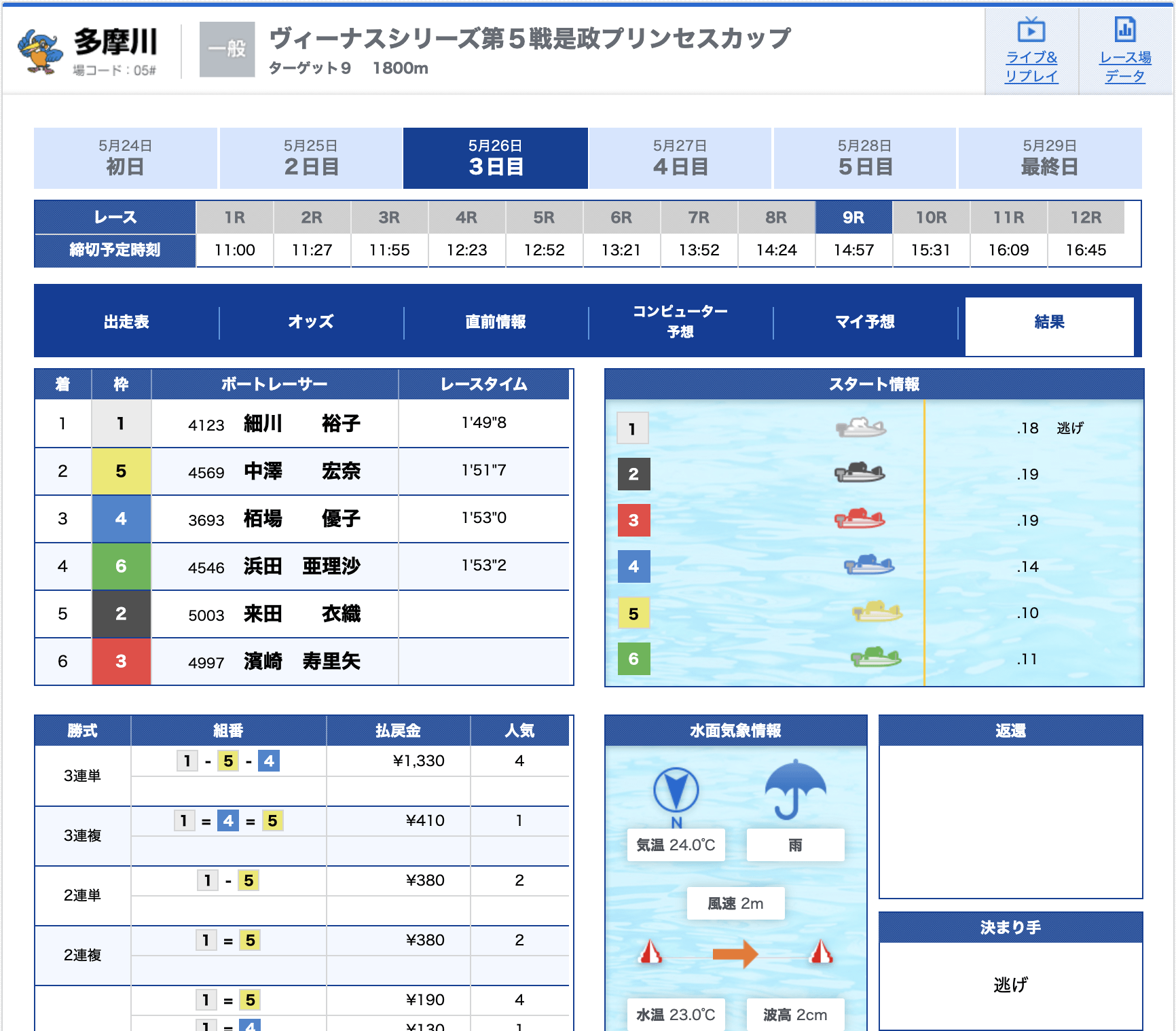ナイターレースの情報をメインで使うようにしています。