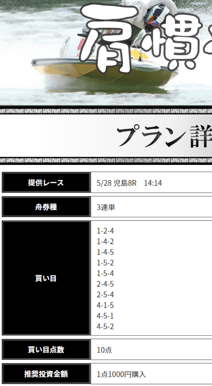 | 利益重ね夜 | 600PT | 41 | 5点(1点2,000円) | 65万円 |