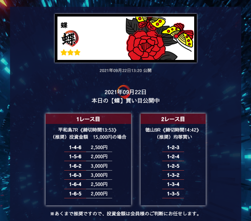 ここからは、今回の検証の本命「花舟」の有料予想を実際に買っていきます。