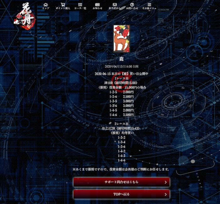 花舟の予想は「AIによって算出されたもの」というのが最大のアピールポイントのようです。