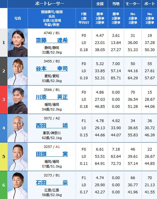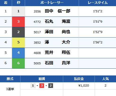 軸になっている1号艇の田中信一郎はA1級で当地勝率が高いと、やはり軸にするだけの理由があるようです。