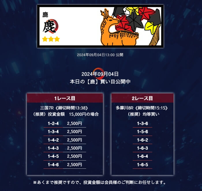 ということで、続く9月4日も「鹿」コースに参加して、高配当重視らしい払戻金を狙っていきましょう!