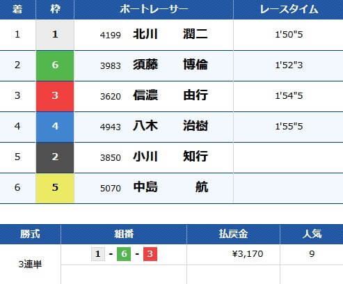 結果は「1-6-3」で払戻金3,170円を獲得!