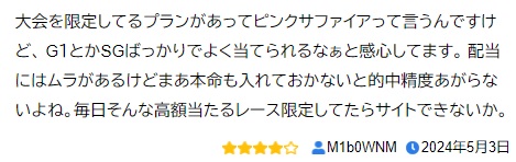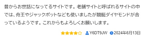 競艇ダイヤモンドのクチコミは高評価が大半を占める