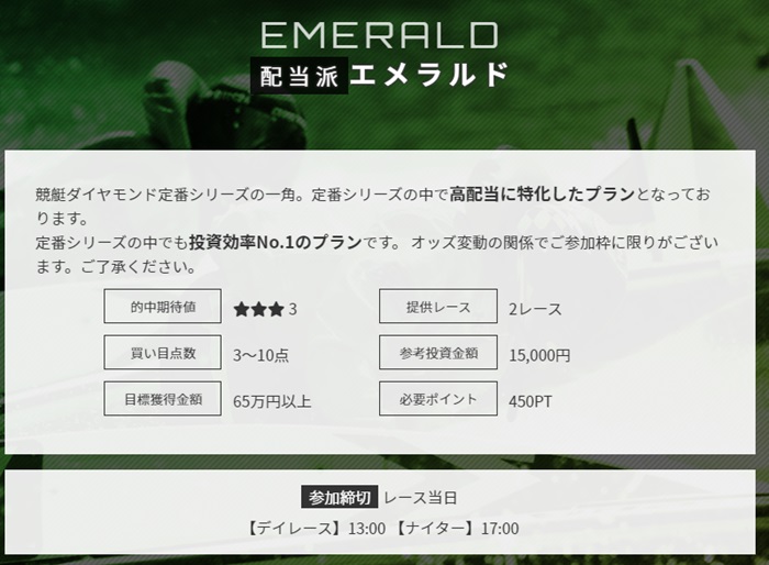 今回は口コミでも評価が高い回収率重視プラン「エメラルド」を購入することに