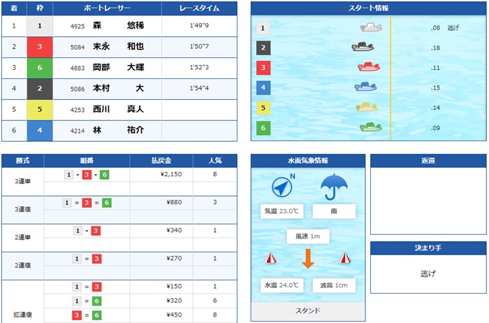 3号艇の鈴木智啓はフライング持ちでそこまで攻めたスタートはしないでしょう。
