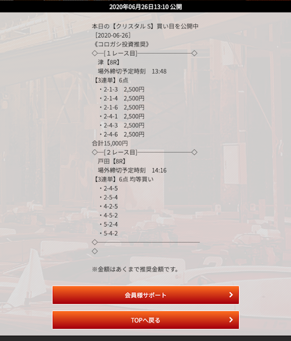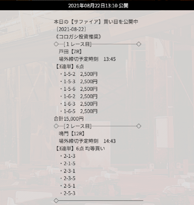 大会を限定してるプランがあってピンクサファイアって言うんですけど、 G1とかSGばっかりでよく当てられるなぁと感心してます。