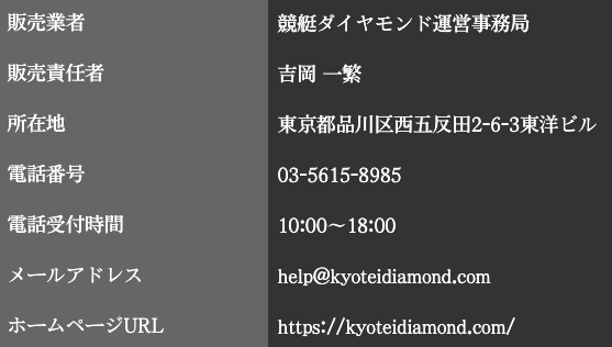 販売業者が法人名ではなかったりビルの階数表示がなかったりするなど気になる点がない訳ではありませんが、どれも競艇予想サイトとしては一般的なことなので必要以上に警戒する必要はないでしょう。