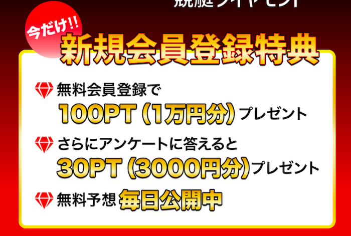 競艇ダイヤモンドの会員登録特典は以下の3つです。