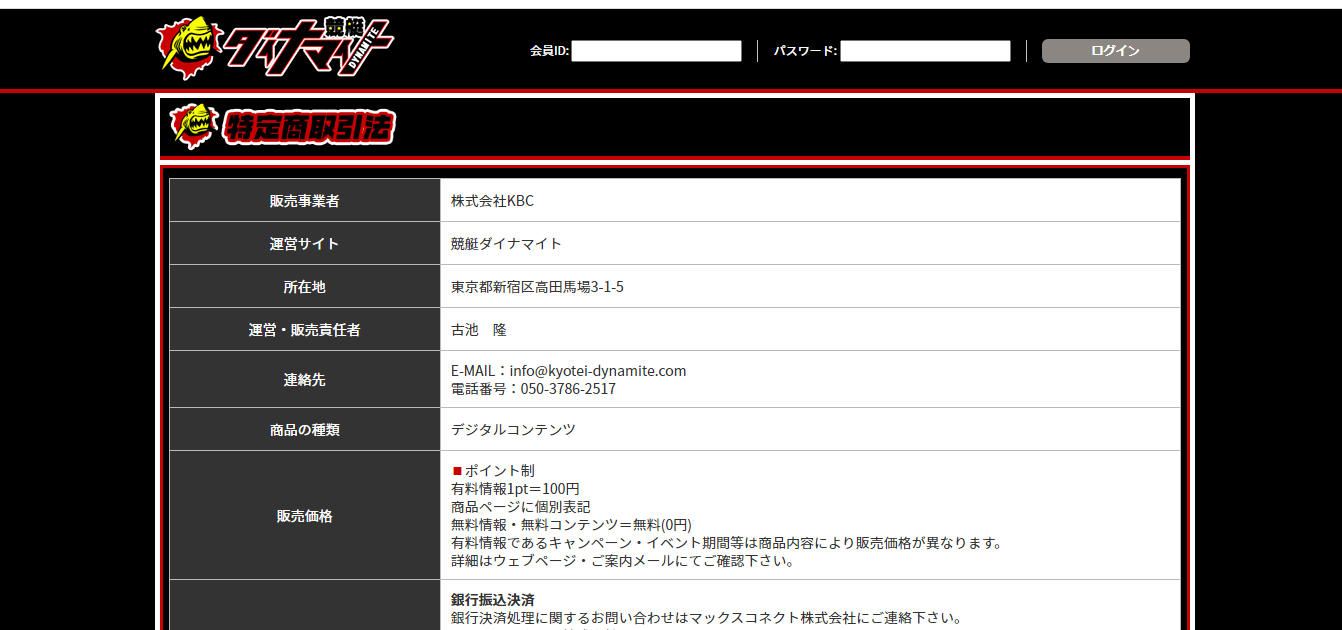 - メールアドレス:E-MAIL:info@kyotei-dynamite.com