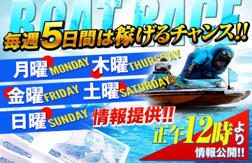 「VENUS BOAT」の無料予想は毎週、月・木・金・土・日分のレースが配信されている。
