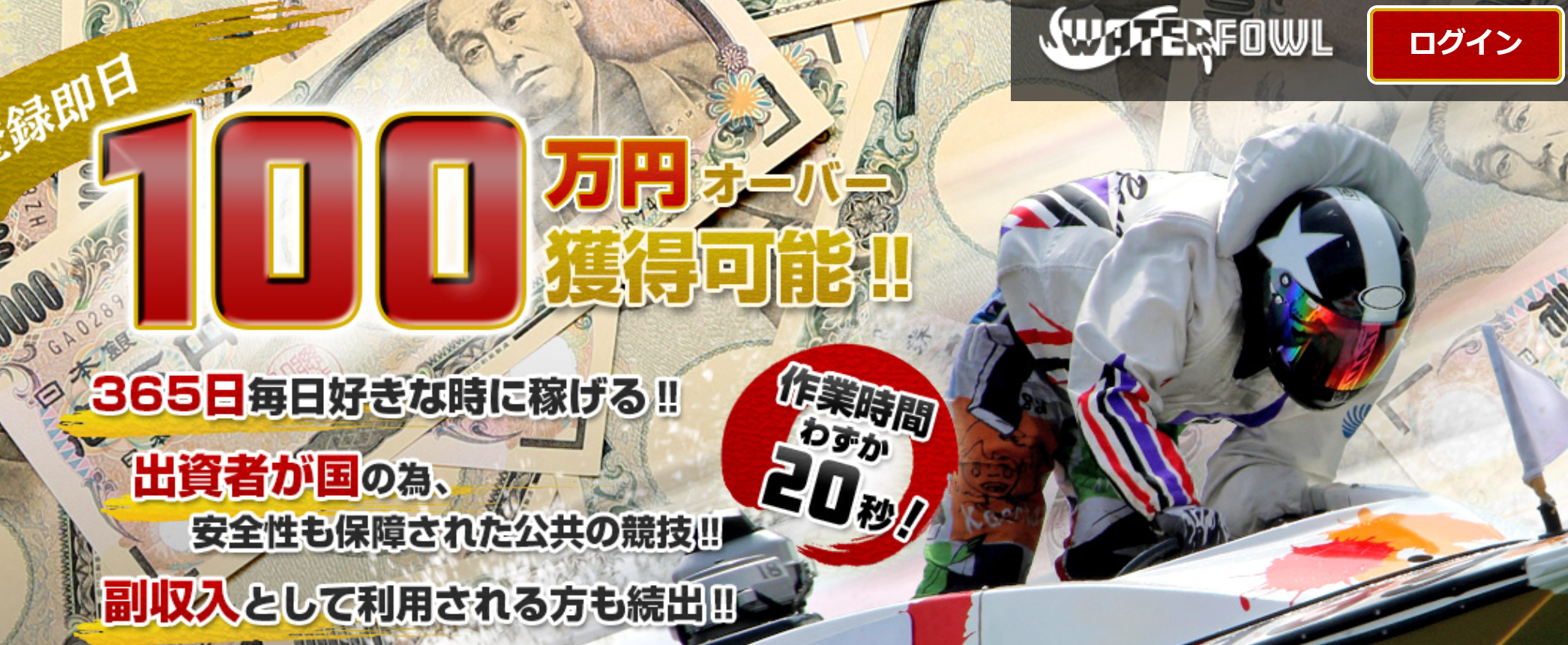 確かに、競艇で舟券を買い、それが当たれば100万円以上貰える可能性はゼロではないので間違ってはいませんが、このサイトに登録したからと言って100万円以上稼げる根拠は書かれていません。