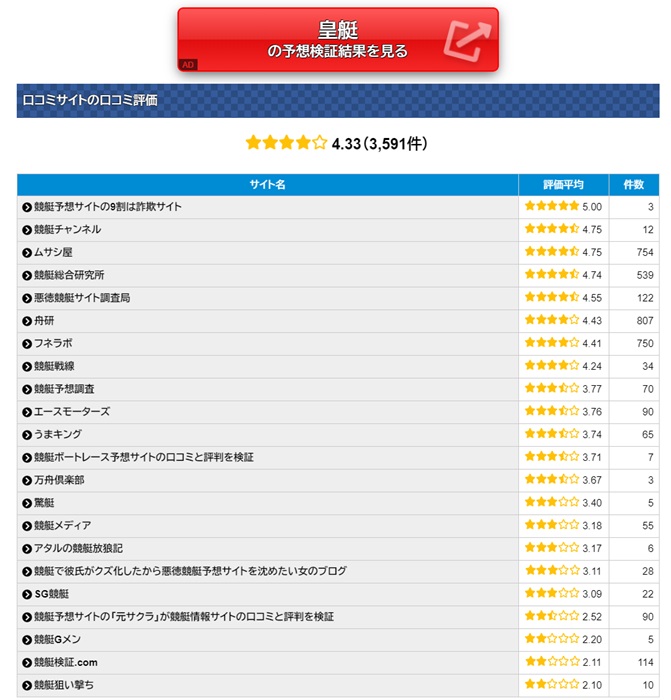 サイトの質はもちろん、口コミ評価や無料予想などどの部分を見ても非の打ち所がない皇艇だワニ。