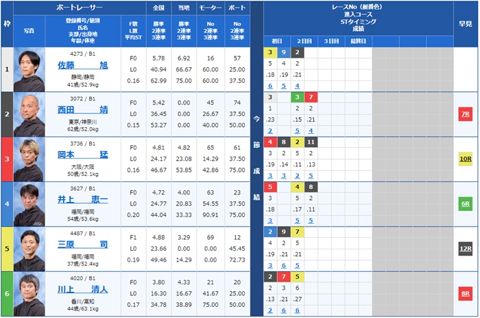 - 【1号艇】:佐藤 旭選手(B1/静岡)
