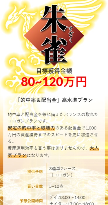 的中率×配当金の大人気プラン!「朱雀」を購入し検証!