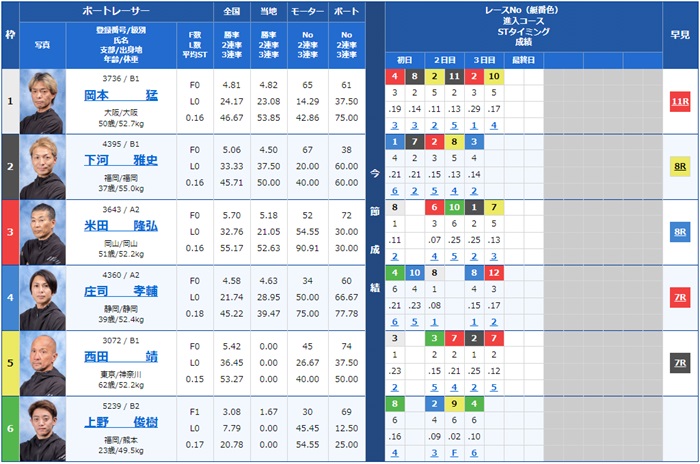 - 【3号艇】:岡本 猛選手(B1/大阪)