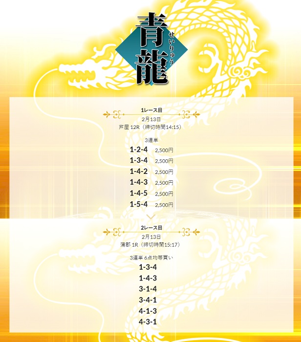 「八咫烏」の実力を見た後は、厳選プランである「朱雀「白虎」「青龍」「玄武」のどれかに参加してみても良いですし、思い切って上級予想プランのどれかに参加してもいいかもしれませんし、担当スタッフの方にオススメのプランを聞いてみるのもアリですし、今回の検証を見た方は思い切って高額な上級予想プランに参加してみるのもオススメです。