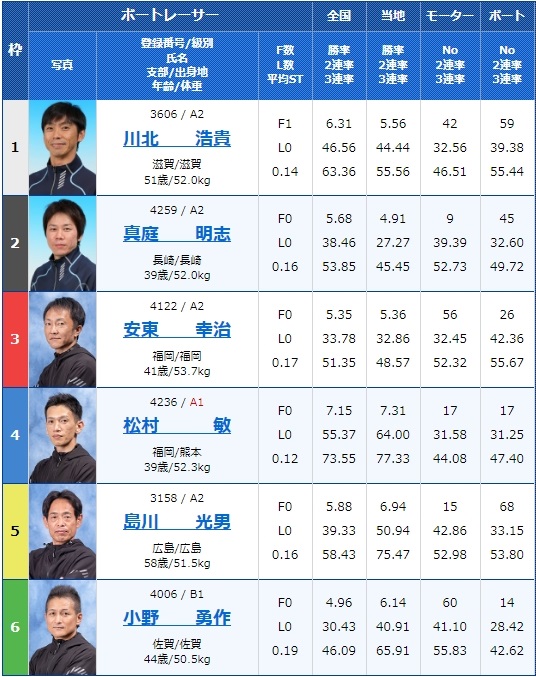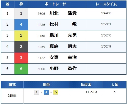 - 【6号艇】:川上 清人選手(B1/香川)