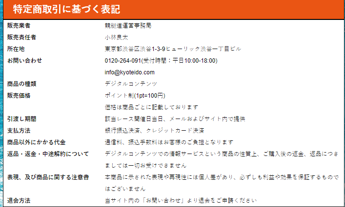 まず、会社名に関してですが会社名の記載はなく、販売業者が記載されており「競艇道運営事務局」という事務局が運営をしているみたいですね。