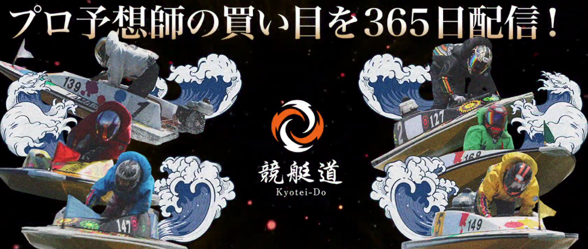 「競艇道」の競艇予想サイトを開いて、まず目に入ってくるのが「躍動感あるレーサーの絵」と「プロ予想師の予想を365日毎日配信」というフレーズ。