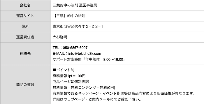 - 会社名:三競的中の法則 運営事務局