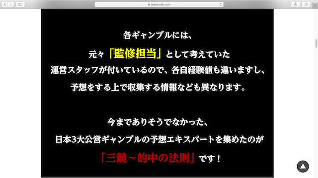 しかもこの「三競・的中の法則とは」のページのボタン、あまり目立たなくて見つけるまでに少し時間がかかりました。