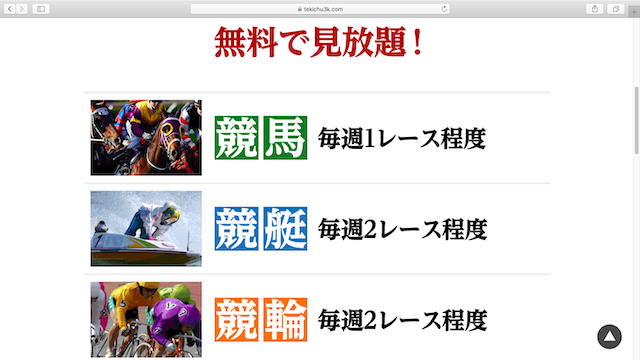 まず目に入るのは「日本三大公営ギャンブルを完全網羅!!」というキャッチコピー。