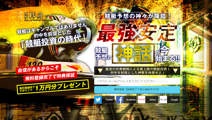 「競艇予想の神々が降臨」「最強安定」「競艇予想の神話が今始まる‼」など、なんだか凄そうな言葉が溢れています。