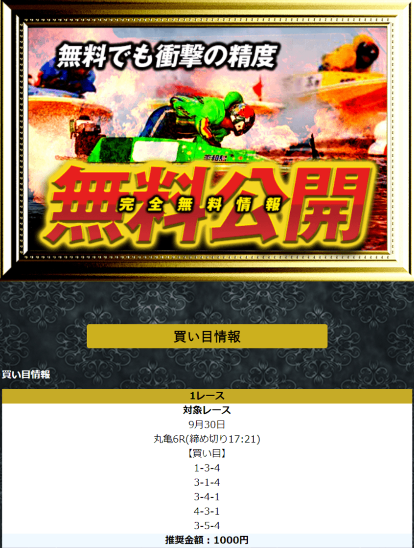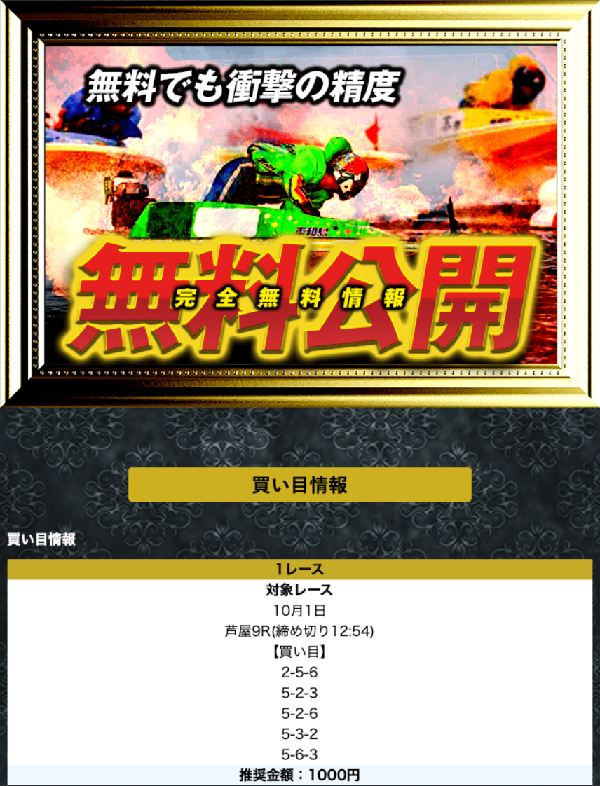 無料予想は1日2レース、3連単5点の買い目が公開されます。