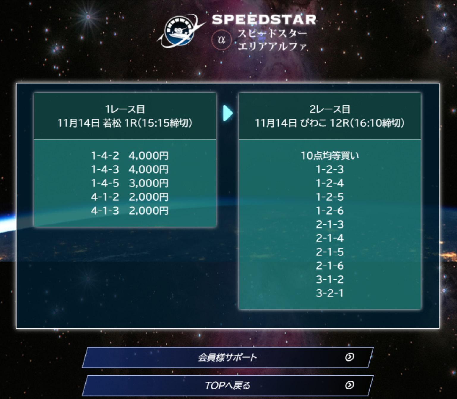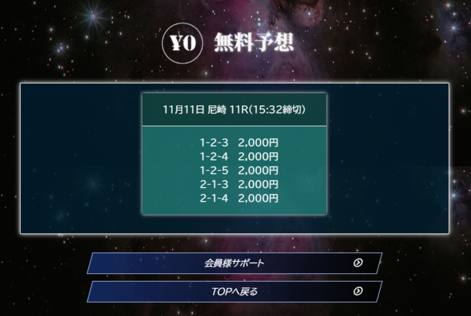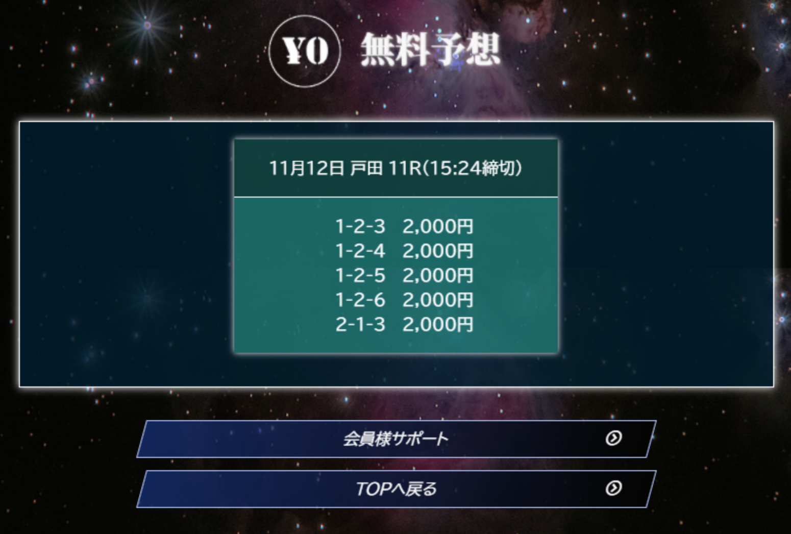 2日連続予想が当たったため、サイトの信頼度が高まりました。