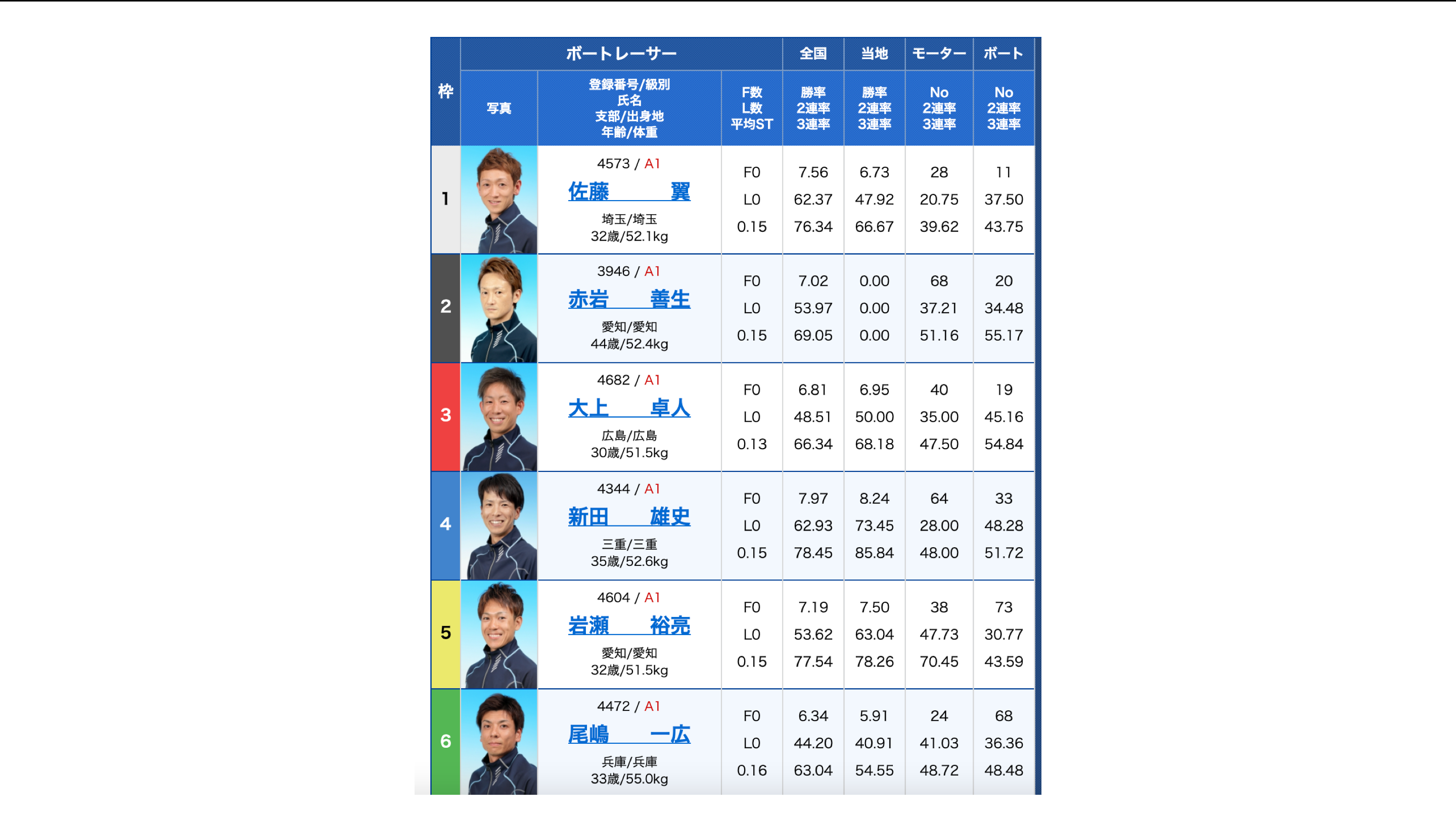 階級B1ボートレーサー(競艇選手)が並ぶ中で難しい予想になりますが、インコースからセンターコースを軸に予想を行なっている買い目です。