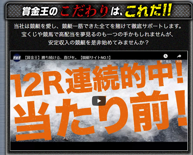 また、「12R連続的中当たり前」や「投資競艇界No1」など書かれているので、それだけの自信があるのなら情報元も気になります。