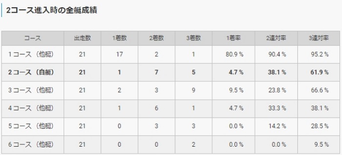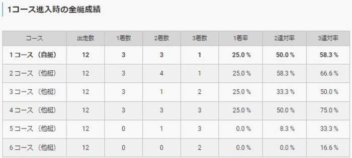 データで見てみても直近6ヶ月の1コース1着率は25%とあまり信用できるものではありません!