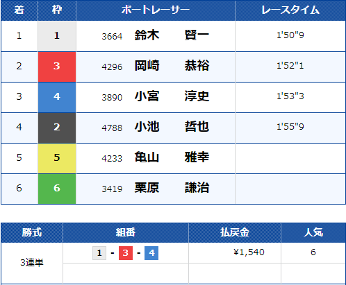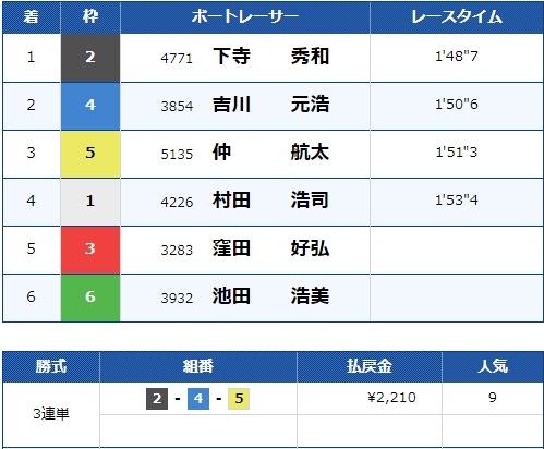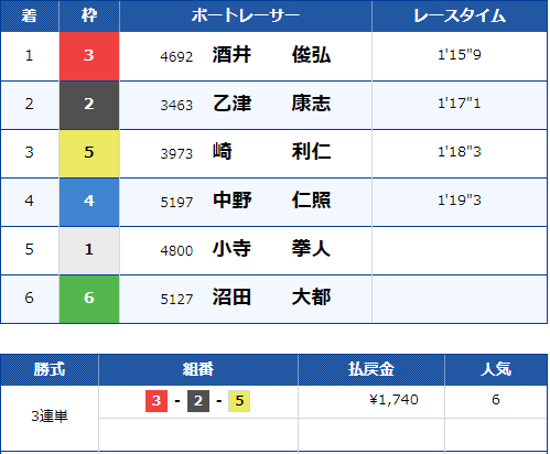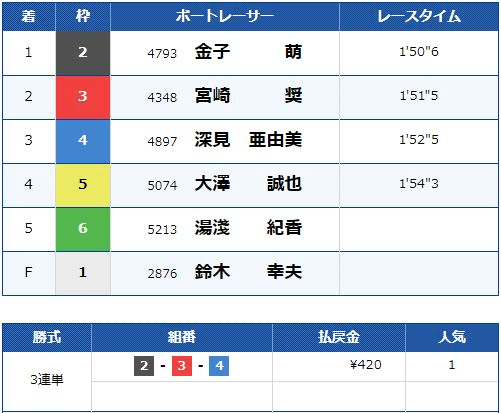- 【6号艇】:池田 浩美選手(A2/静岡)