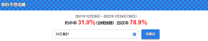 無料予想は、買い目5点な事もあり、的中率こそ低いものの大きな回収も見込める予想内容であった。