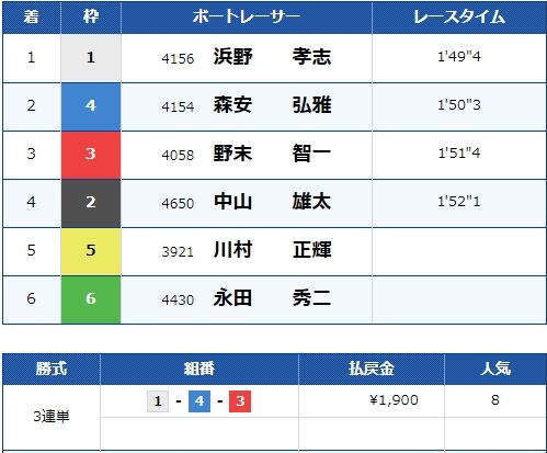 - 【1号艇】:浜野 孝志選手(B1/三重)