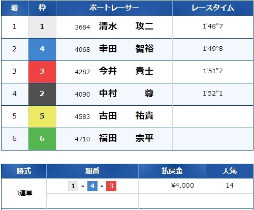- 【4号艇】:森安 弘雅選手(A2/香川)