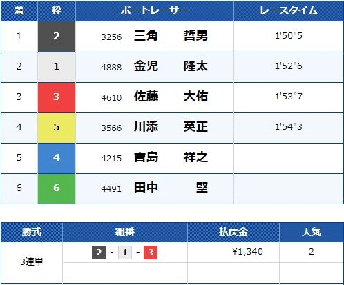2号艇・魚谷智之選手が差し、順当にイン側で勝負が決する展開。